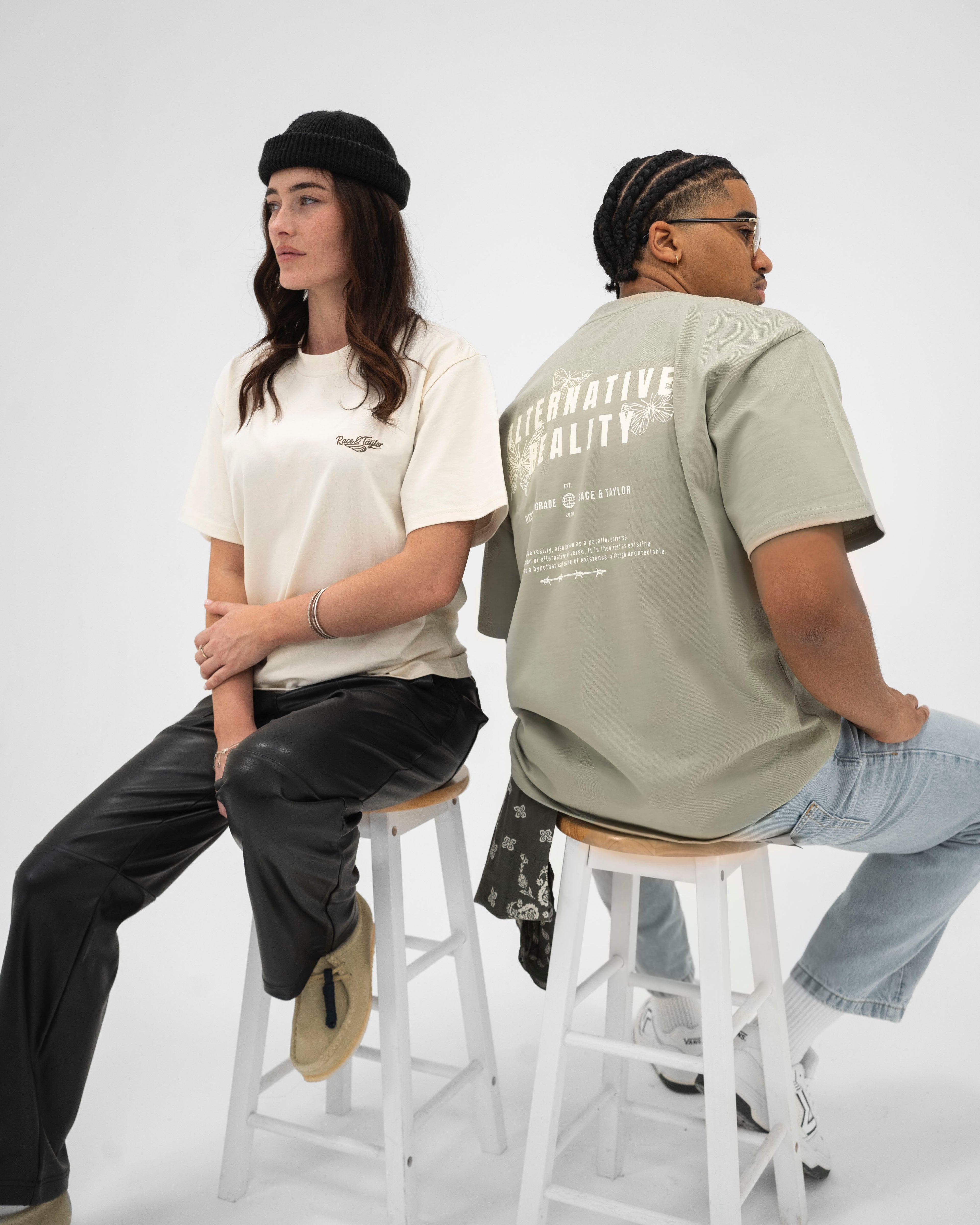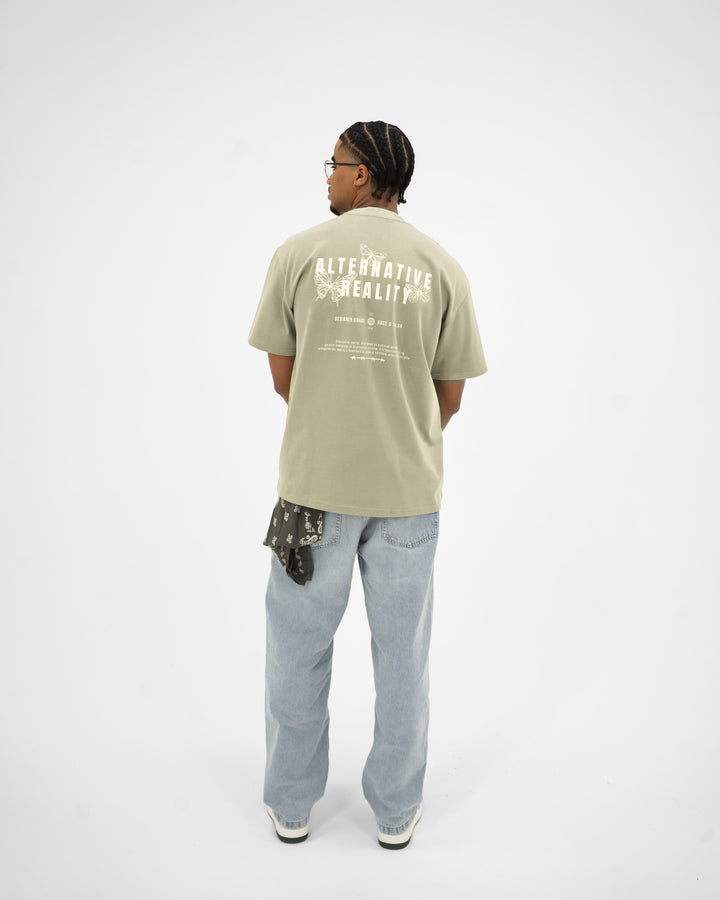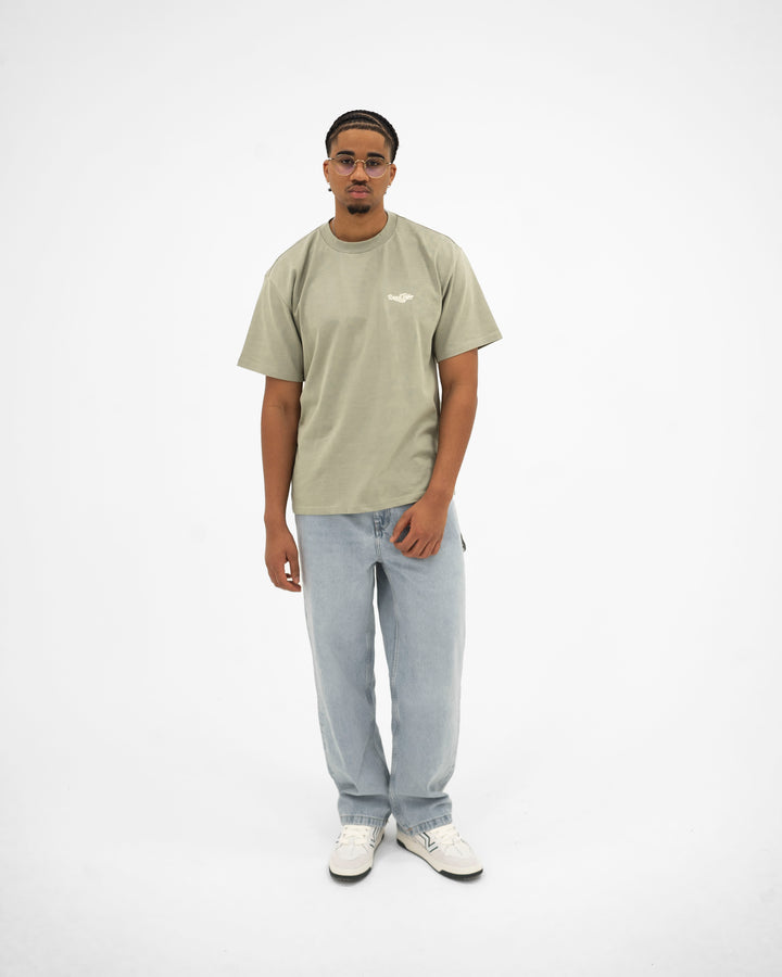 Sage premium 280gsm heavy weight tee, boxy fit with dropped shoulders. Designed in house. Intentionally runs oversized, we recommend sizing down if a regular fit is preferred.