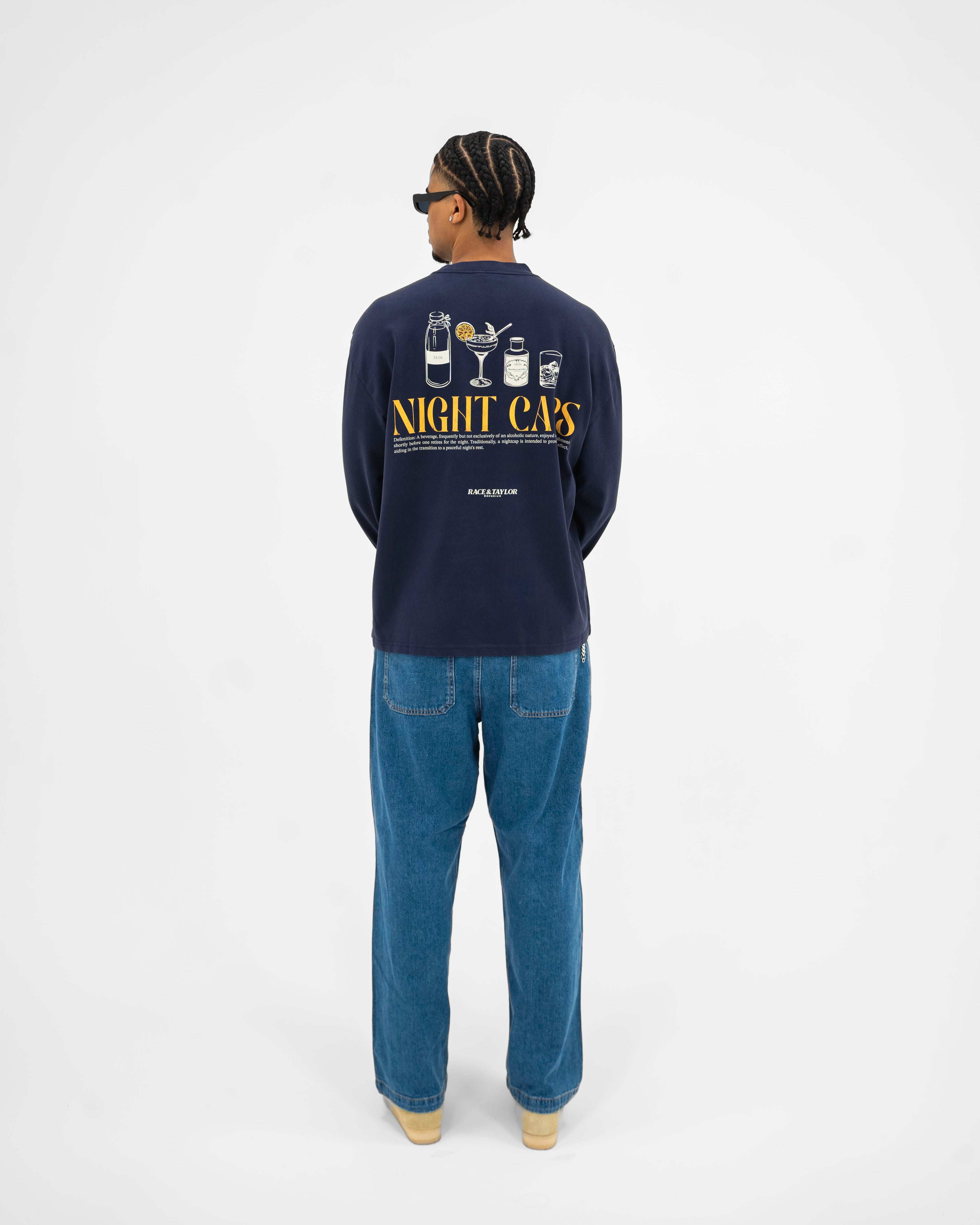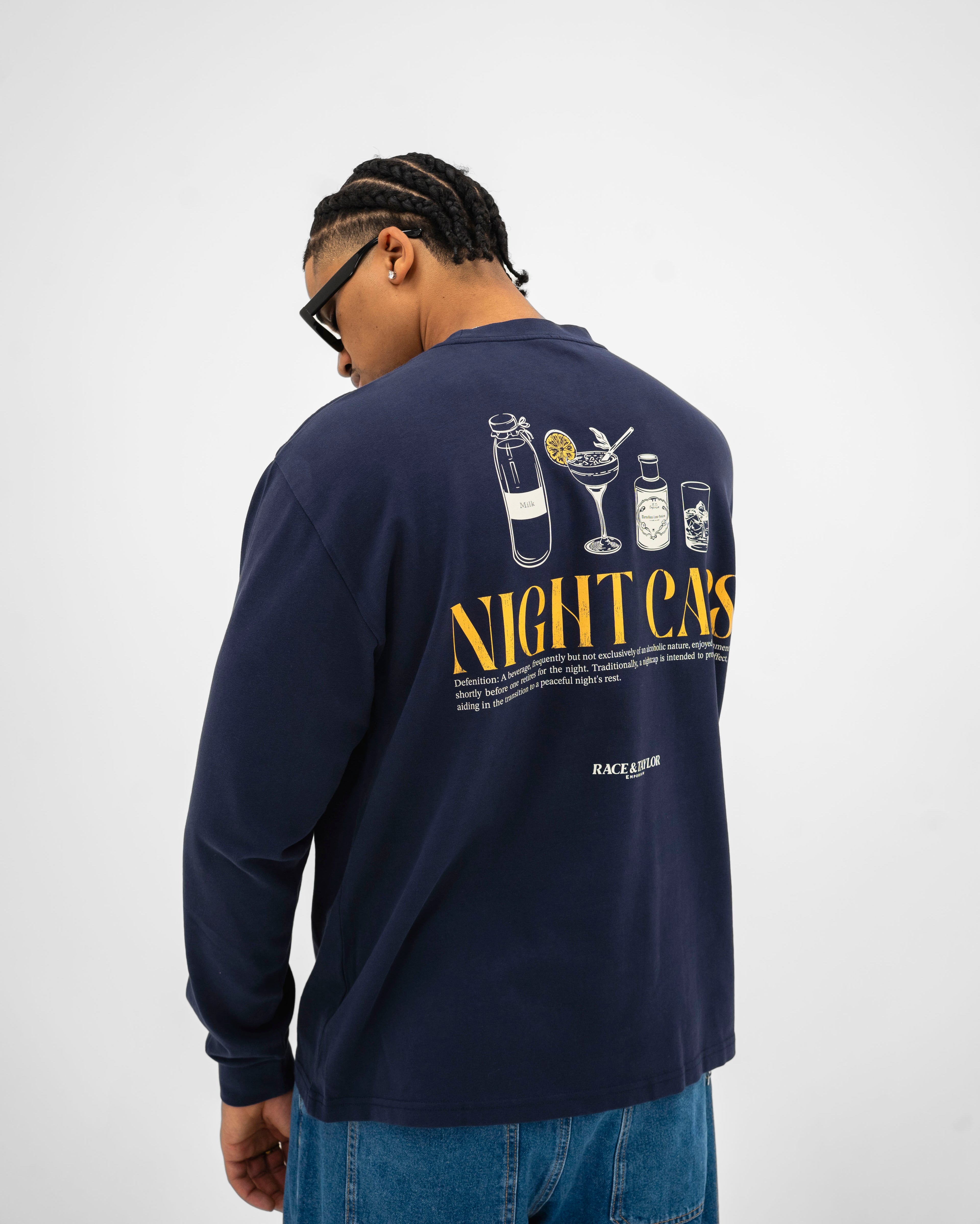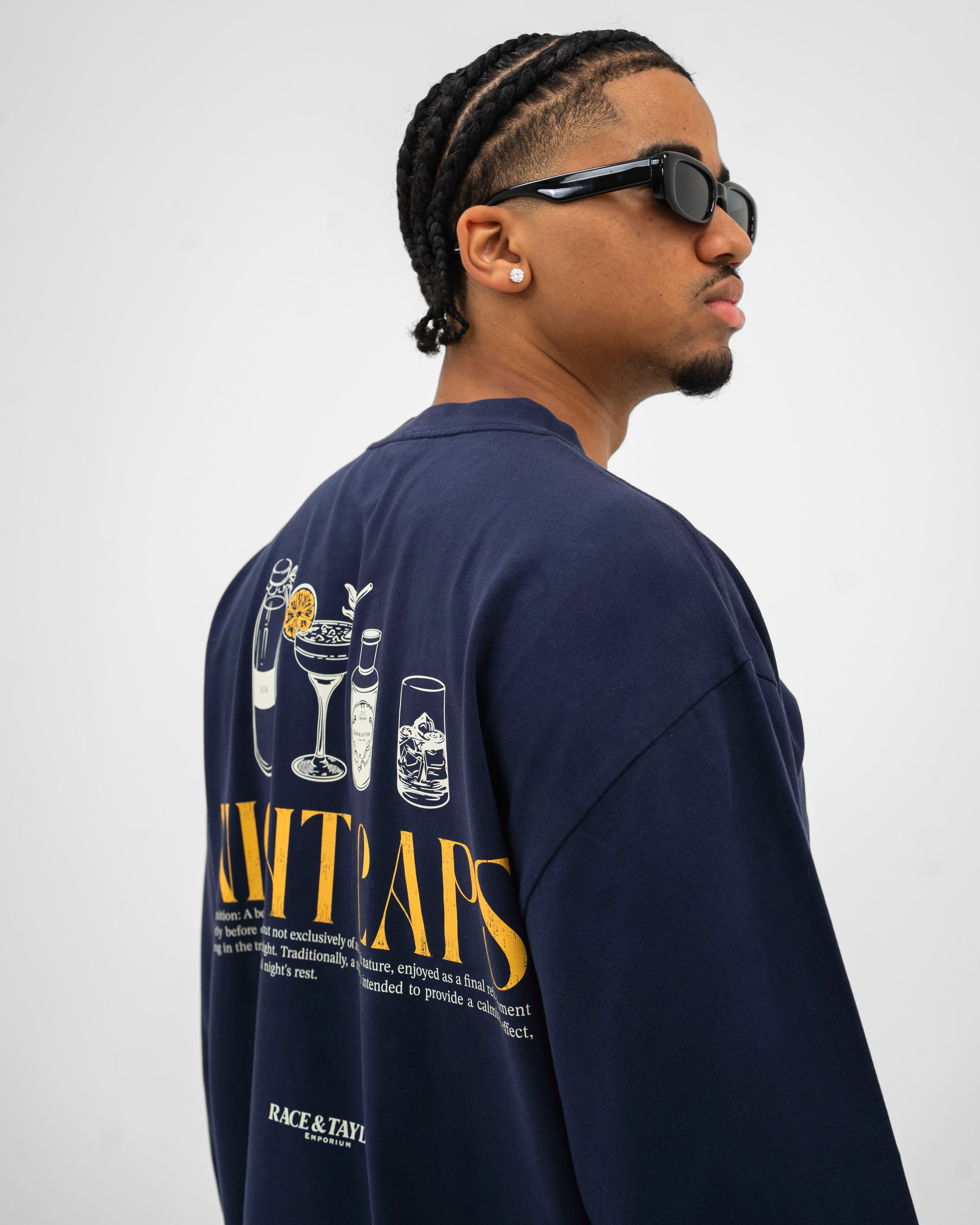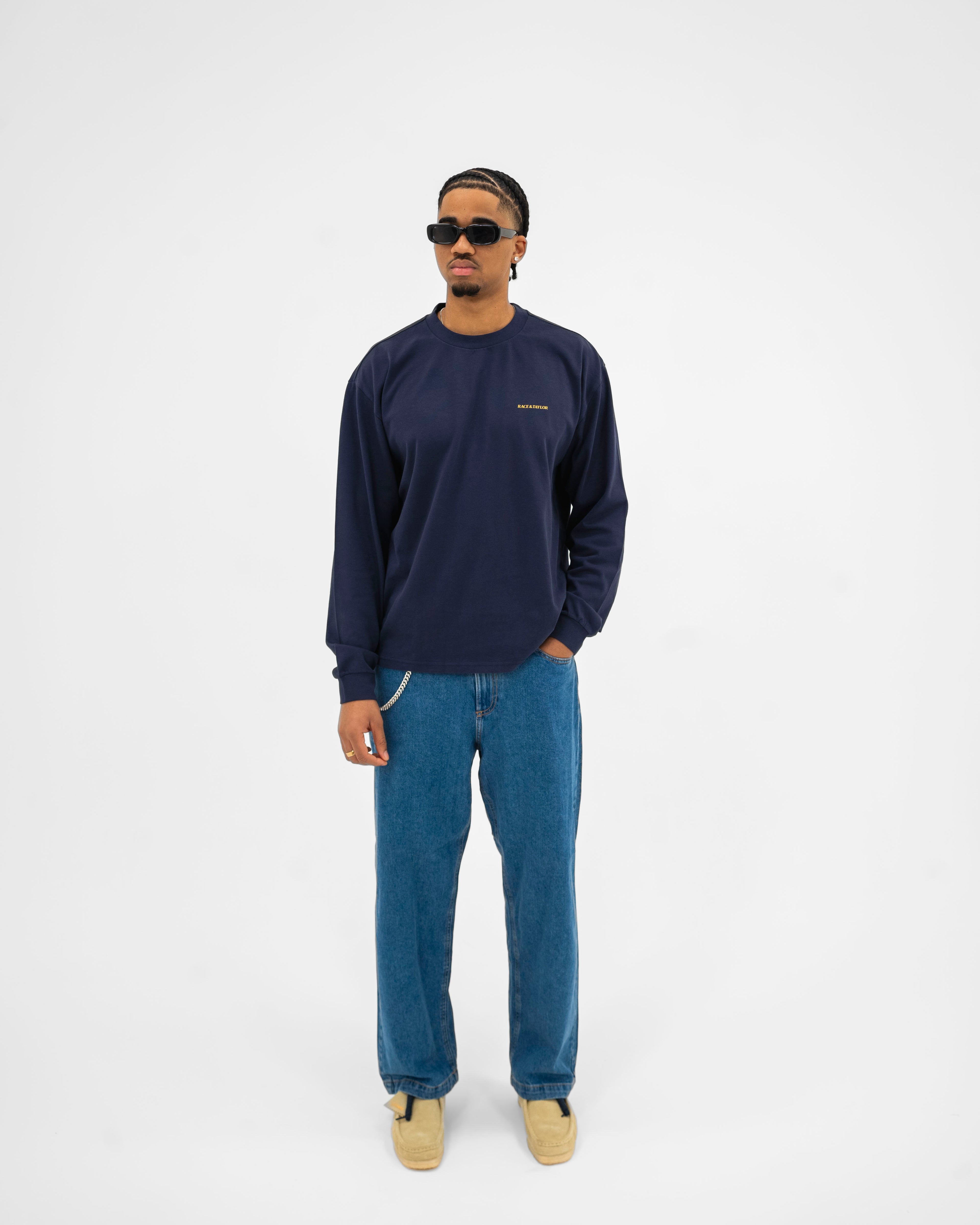 Premium 280gsm heavy weight long sleeve tee in navy. Designed for a relaxed fit and built for durability. Intentionally runs oversized, we recommend sizing down if a regular fit is preferred.